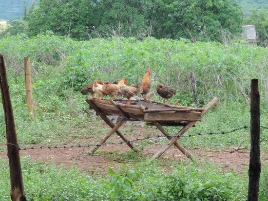 Mit der Maria, der Schwester von der Mercedes habe ich eine Wanderung zur Comunidad Los Aquaticos unternommen. Die Gruendern Antonica Iquierdo pries in den 1930er Jahren die heilende Kraft des Wassers in der Gegend. Die kleine Dorfgemeinschaft kommt noch heute ohne medizinische Hilfe aus. Die Familie, bei der wir eine Pause eingelegt haben, hat mir dann noch gezeigt, wie sie aus Zuckerrohr einen Saft (Guarapo) gewinnen. Von deren Hof aus hat man einen tollen Blick ueber das Tal. Auf dem Rueckweg haben wir uns einen Kutschfahrer angeheuert, weil wir beide keine Lust mehr hatten zu laufen. Sie hat mir unterwegs ihre ganze Lebensgeschichte erzaehlt, aber in einem Affentempo, dass ich wahrscheinlich nur ein Drittel verstanden haben. Die einzige Sache, wo es die Kubaner wirklich eilig haben, ist beim Sprechen.