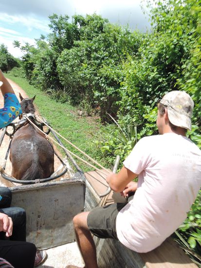 Vinales ist ein kleiner Ort mit ca. 16.000 Einwohner und nach ein paar Tagen kennt man schon einige Leute und wird auf der Strasse immer freundlich gegruesst. Hier schient die Zeit wirklich stehen geblieben zu sein. Viele sind hier mit Kutschen, zu Pferd oder mit dem Rad unterwegs. Die Pferde und Pferdekutschen sind hier nicht nur eine Attraktion fuer die Touristen, sie sind auch ein wesentlicher Bestandteil des Transportes und Arbeitsmittel auf dem Land.