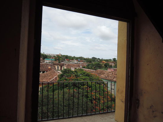 6.6.2015:Hier hatte ich mir aus dem Reisefuehrer eine Casa (Casa Bernardo) in der Naehe des Parque Cespedes rausgesucht und der dazugehoerige Besitzer hat mich vom Bus abgeholt. Die Casa hat 3 Zimmer, 2 Dachterassen (mit einem schoenen Blick ueber die Stadt) und einem kleinen Balkon vorm Zimmer, von dem man aus die Strasse ueberblicken kann. Es gab wieder ein reichhaltiges Fruehstueck und der Bernardo hat mir auch ein vernuenftiges Abendessen zubereitet. Wenn der Bernardo nicht da ist, halten die Nachbarinnen die Bude in Schuss. Er lebt wohl von seiner Frau getrennt, aber die Maedls von nebenan schaukeln den Laden schon. Mal taucht die eine oder die andere Nachbarin auf. Das ist mir aber schon in Vinales aufgefallen, dass sich die Nachbarn gut untereinander helfen.