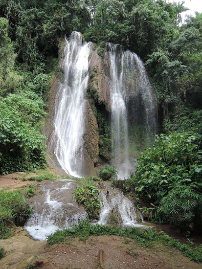 Einen Tag habe ich einen Ausflug in die Sierra del Escambray nach Topes de Collantes unternommen. Topes de Collantes ist ein Kurort auf 800m, wo sich die Kubaner ein riesiges Anti-Stress-Zentrum hingebaut haben. 15km noerdlich davon liegt der Parque Guanayara. Mit umgebauten Lastern ging es in den abgelegendsten Teil des Parkes. Erst gab es eine 11/2stuendige Wanderung an einem Fluss entlang zum Wasserfall Salto de Rocio und danach weiter zu einem Naturpool (Pozo de Venado), wo man reinspringen und sich etwas abkuehlen konnte. Unser Guide hat uns unterwegs Interessantes zur Fauna und Flora Kubas erzaehlt. Im Restaurant Casa dela Gallega, einem ehemaligen Bauernhof, gab es ein Mittagessen und zurueck ging es wieder mit den Lastern.