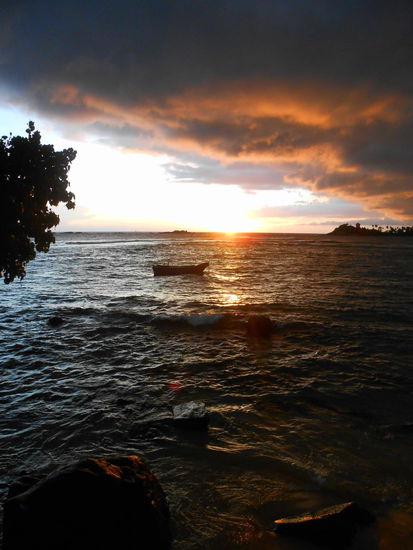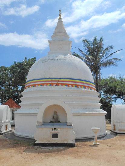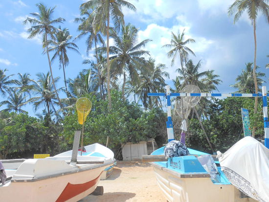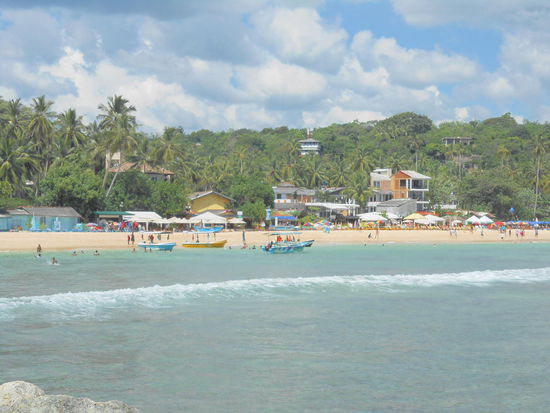 Bei einem Tsunami am 26. Dezember 2004 zählte die Unawatuna Bay zu den am schwersten getroffenen Gebieten der Südküste. Der Strand war einmal, man sitzt bei einem Drink durchaus bei Hochwasser. Schade, kein tropischer Traumstrand a la Hikkaduwa.