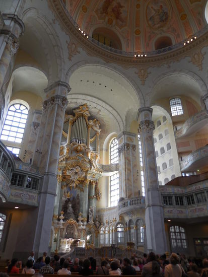 Es war ein Dienstag Nachmittag, ca. 15.00 Uhr. Völlig zufällig stehe ich vor der Frauenkirche zu einer Zeit, in der "offene-Kirche" ist. Also kann ich ohne jede Wartezeit pronto hinein, zahle nix, quetsche mich in eine Kirchenbank und staune Bauklötzer: Hammerschön !!!