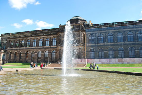 Im Innenhof, der Brunnen. DD tickt sehr pünktlich, es wird um punkt 10.00 Uhr aufgesperrt. Rucksäcke muss man wegschließen lassen, fotografieren ist eh verboten. Also alles weg in die Mietschränke. Audio-Guide gegriffen und los. WOW !!!! OMG. Man darf ja nicht fotografieren, leider. Aber, was ich jetzt hier heute morgen im Grünen Gewölbe sehe, ist der Oberhammer !