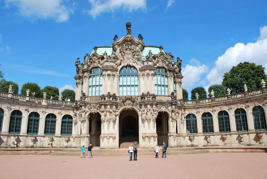 Warum heißt der Zwinger "Zwinger" ? So nannte man im Mittelalter einen mittleren Gebäudeteil zwischen der inneren und äußeren Festungsmauer. Einer derartige Funktion hat der Zwinger nie erfüllt (weil´s ja auch die Festung nicht gab). Streng genommen hat August der Starke das Teil als völlig nutzlosen Zier- und Prunkbau errichten lassen. Denn wer braucht schon wirklich eine Orangerie, ein Festareal oder sonstige Schmuckbauten + Gärten ??? Das Schloss, als dessen Vorhof der Zwinger hätte dienen sollen, wurde auch nie gebaut. Also ist der Zwinger eine wunderschöne Geldverschwendung gewesen...