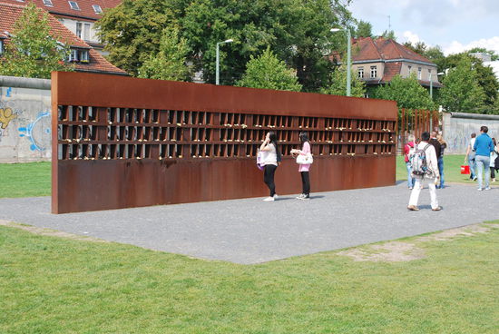 Angekommen an der Gedenkstätte "Berliner Mauer" an der Bernauer Straße, wo heute noch ein 1,4 Km langes Stück Original-Mauer steht. Und genau das will ich sehen, weil ich zwar altersmäßig durchaus die Möglichkeit gehabt hätte, Berlin zu DDR-Zeiten zu besuchen, es aber nie getan habe. Berlin in den 80ern war für mich so weit weg, wie der Mond.
