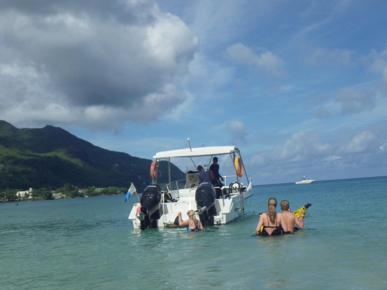 Das Boot wartete schon auf die Taucher. Steffi konnte auch mit fahren und schnorcheln. Die Mannschaft von der Tauchbasis gab noch einige Infos über das Tauchgebiet am Bay Ternay Marine NP und schon ging es in die Unterwasserwelt. Ich war sehr überrascht, dass sich die Unterwasserwelt nach der Korallenbleiche Anfang 2000 (2001 erster Tauchgang auf den Seychellen von mir) wieder gut erholt hatte.