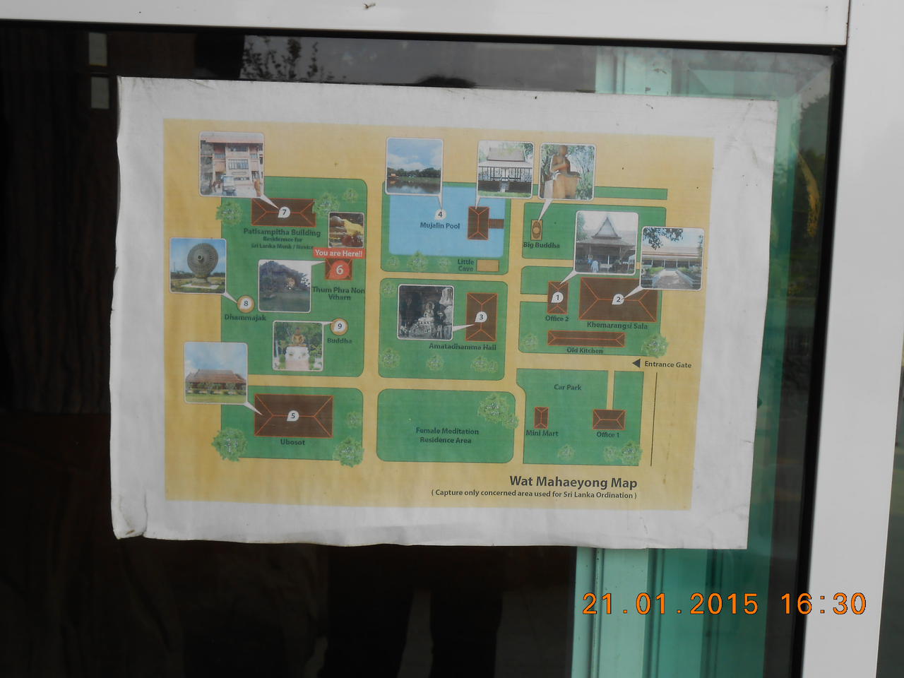 Und daneben der neue Tempel, welcher immer erweitert wird, mit Räumen zum beten oder für die Mönche, mit einem kleinen Schulgebäuden und vielen Unterkünften für Meditationsteilnehmer. Einem Office und großem Hof, einem kleinen Fluss und einem größeren See samt Pavillon darin. Außerdem wird an einem weiteren Gebäude gebaut.