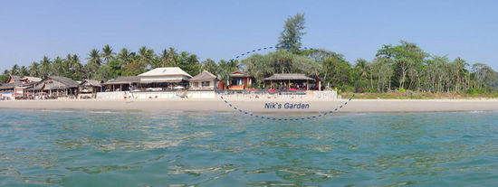 Nachdem wir uns von der doch relativ anstrengenden Reise erholt und danach etwas im kleinen Ort umgesehen hatten, erkundigten wir uns bei Daniel, dem schweizerischen Geschäftsführer von Nik's Garden, nach einem guten Fischrestaurant am Strand. Er empfahl uns das Beach Side - tagesfrisch gefangener Fisch und Meeresfrüchte, aber auf Wunsch auch Fleisch werden am Strand gegrillt. Außerdem gibt es natürlich auch die ganze Palette an Curries und anderen Thai Gerichten.