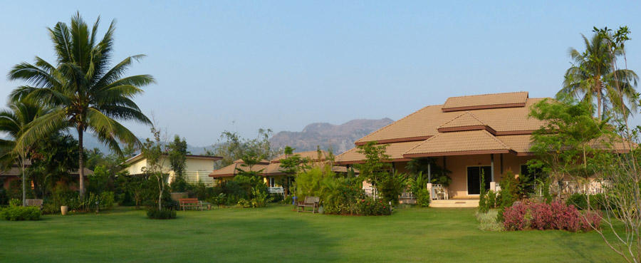 Mit dem Taxi fuhren wir zu unserer Unterkunft Khao Yai Cottage etwa 20 km außerhalb von Pak Chong nahe der Nationalparkgrenze. Die kleine Anlage besitzt einen gepflegten Garten und sehr geräumige Zimmer und wurde uns über unseren Dschungeltour-Veranstalter vermittelt.