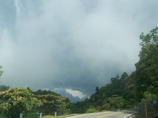 Dann prasselt noch ein Gewitter auf uns nieder. Zum Glück ist jetzt die Staße besser. Dann endlich, nach 7 Stunden stoßen wir wieder auf die Hauptstraße und kommen kurz vorm Dunkel werden in San Cristobal an.