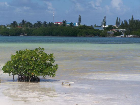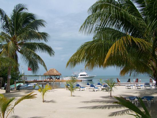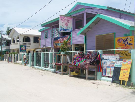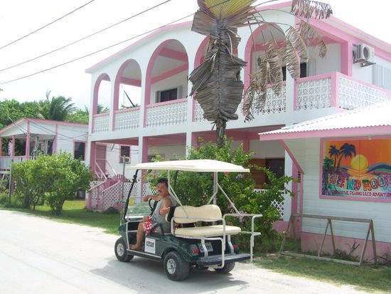 Die erste Aktion heute morgen ist die Organisation der Weiterreise. D.h. wir kaufen uns ein Kombiticket für das Wassertaxi nach Belize City und den Bus nach Flores in Guatemala. Das Ticket wird überall für 32$ angeboten.