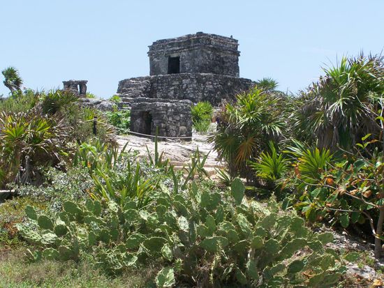 Wir fahren nach Tulum, eine der schönsten Maya Stätten, da sie direkt am smaragdenen Meer liegt.