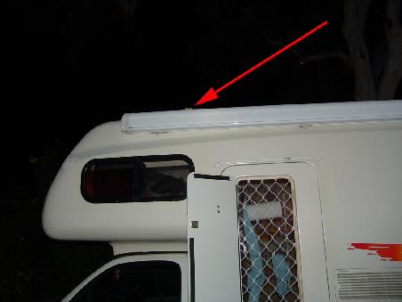 Man achte auf die Stelle mit dem Pfeil.... da auf unserem Camper sitzt .......