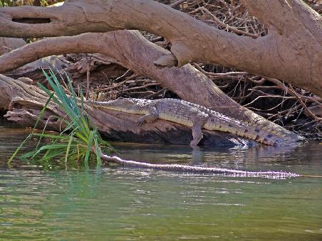 Ach ja in der Lawn Hill Gorge gibt es viele Süsswasserkrokodile, so wie dieses hier. Trotzdem kann man in diesem Fluss schwimmen. Die Freshies, wie sie die Einheimischen nennen sind scheu und greifen den Menschen nur an wenn er sie bedrängt, sonst sind sie harmlos und ernäheren sich von Insekten, besonders gerne mögen sie Libellen. Aber beim Schwimmen nicht ärgern gehen, ein nasty bite ist euch sonst gewiss.....