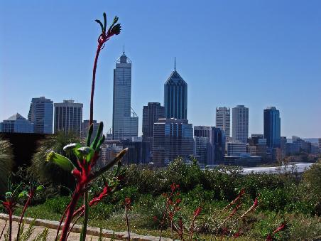 Aussicht vom Kings Park auf die Skyline der Stadt.....