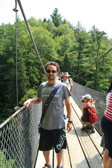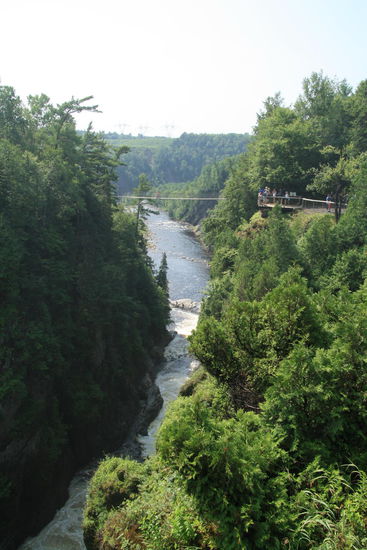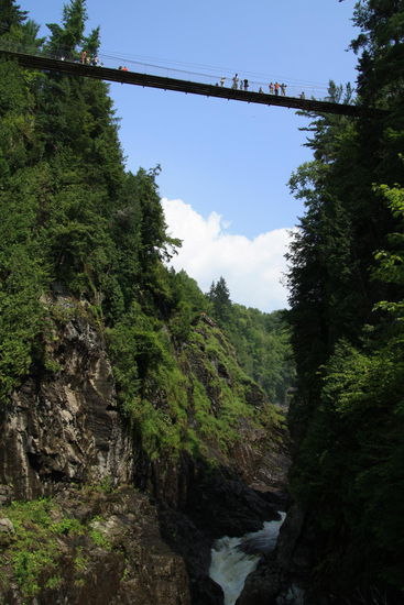 Wir legten dann noch einen Zwischenstopp ein, um den Ste Anne Canyon zu besuchen, der direkt am Weg lag. Hierbei handelt es sich um eine Schlucht, in der sich Wasser in Kaskaden ca. 70 Meter donnernd in die Tiefe stürzt. Verbunden ist der Rundweg ÜBER die Fälle durch drei verschiedene Hängebrücken auf verschiedenen Höhen, die je für sich atemberaubende und spektakuläre Blicke ermöglichen. Kanada bzw. Québec pur!!!