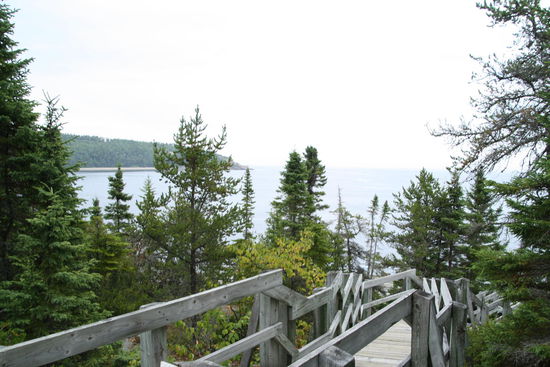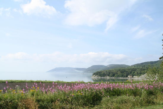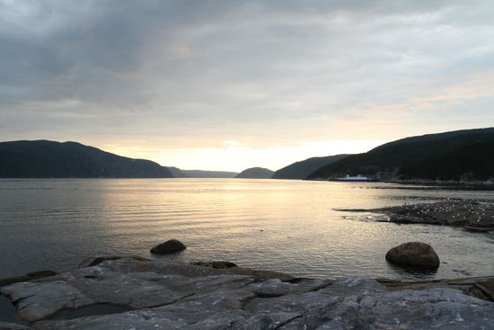 Gegen Nachmittag erreichten wir dann die Fähre, die uns samt Auto (kostenloser Service, 24 Stunden am Tag, alle 15 min.) über den Saguenay Fjord, der in den St. Lorenzstrom mündet, hinüber nach Tadoussac brachte. Von da aus waren es noch drei Minuten bis zum kleinen aber feinen B'n'B. Eine ältere nette Dame, die uns an einem liebevollgedeckten Frühstückstisch mit frisch gemachtem Frenchtoast und frischem Obstsalat willkommen hieß. Tadoussac ist ein kleiner verschlafener Ort, der ganz im Zeichen des Waltourismus steht.