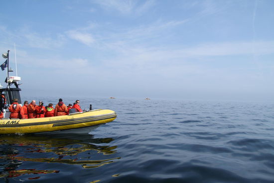 Nebenbei begleitete uns dann auch noch ein Rudel (ca. 100) Grauer Seelöwen eine Weile, der sich in der Nähe eines Finnwales aufhielt und diesem zu folgen schien.