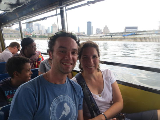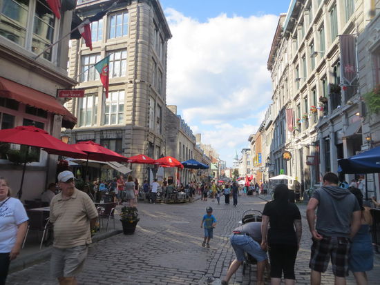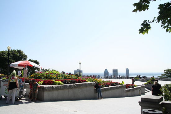 Nach dieser Aktion konnten wir dann endlich zu Fuß in die Stadt laufen und diese erkunden. Dabei haben wir uns vor allem auf die Altstadt konzentriert, die ein schönes Flair hat. Alles französisch, kleine Bistros am Rande des Kopfsteinpflasters, Grünanlagen mit Springbrunnen, Plätze auf denen eine Menge los war, wie z. b. Straßenkünstler, Schmuckverkäufer, Karikaturisten. Hinter jeder Ecke gab es etwas zu entdecken. Nachmittags haben wir dann noch spontan eine Rundfahrt mit dem Amphiebus gemacht, der also gleichzeitig Bus und Schiff ist. Da Montreal ja wie eine Insel, viel von Wasser umgeben ist, spielte sich dort am alten Hafen und auf dem Wasser auch eine Menge ab.