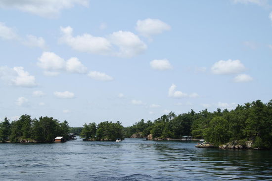 Die Fahrt durch die Inseln war einfach nur schön. Überall im Sankt Lorenzstrom lieben sie weit verstreut im tiefblauen bis smaragdgrün schimmernden Wasser. Teilweise sind sie bewaldet und bewohnt, teilweise sind es Sandbänke und Felsbuckel, die aus dem Wasser ragen.