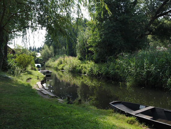 Das Wetter meint es gut mit uns und verwöhnt uns mit Sonne. Genau richtig für die lang ersehnte Kahnfahrt. Dafür fahren wir mitten in den Spreewald nach Schlepzig. Obwohl hier ein Kahnfahrtbetrieb am anderen liegt, ist es still und beschaulich. Wir befolgen die Empfehlung von Simone und haben mit Sieglinde Fischereinen Termin für eine zweistündige Fahrt ausgemacht. Eine gute Wahl. Die "Fischerin" ist herzlich, steckt voller Geschichten zum Spreewald und seiner Natur und benutzt zum Vorwärtskommen das traditionelle Rudel aus Erlenholz. Das ist richtig Arbeit, doch sie sei es gewohnt, lacht sie. Und schließlich trägt sie ja auch die sorbische Arbeitstracht.