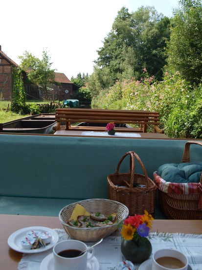 Wir erfahren, welche Wege die Spree auf den 400 Kilometern von ihrer Quelle bis zur Mündung in die Havel nimmt, und dass die Spreewaldkrimis gar nicht hier gedreht wurden, sondern im etwas dichter besiedelten oberen Teil. Selbstverständlich sind wir überzeugt, dass wir uns im schöneren Abschnitt befinden. Zwischendurch stärkt man sich mit Kaffee, Schmalzbroten und den berühmten Spreewaldgurken, die auf keiner Fahrt fehlen dürfen.