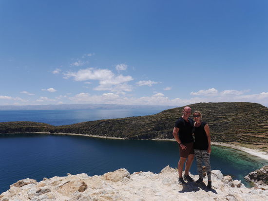 Am naechsten Morgen ließen wir uns dann vom Taxiboot auf der Nordseite der Isla del Sol (Cha'llapampa) absetzen und wanderten auf die Suedseite (Yumani). Eine der schoensten Wanderungen bisher. Auf der Nordseite besichtigten wir dann noch den Chincana Komplex, der die Reste des Sonnentempels, den heilligen Felsen und den Inka-Palast umfasst. Oder besser gesagt was davon noch uebrig ist. Wir entschieden uns dann die Bergroute zu nehmen und hatten so herrliche Ausblicke. Auf der Suedseite sahen wir dann noch die Inka- Treppe und den Inka- Brunnen. Angeblich soll es Glueck und Gesundheit bringen, wenn man sich dort in allen drei Becken die Haende waescht. Klar, dass wir das sofort gemacht haben.