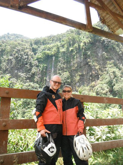 Am nächsten Tag wagten wir uns dann mit den Fahrrädern die gefählichste Straße der Welt runter zu düsen und was soll ich sagen?! Es war einfach richtig cool. Landschaftlich und auch die 62 km downhill, hauptsächlich auf Schotterpisten, waren Adrenalin pur. Oben noch richtig kalt (schneebedeckte Berge) kamen wir unten dann im Dschungel an mit tropischen Temperaturen. Ein absolutes Muss für jeden La Paz Besucher, der mutig genug ist.. hahahaha..