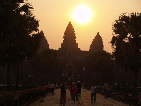 Am dritten Tag hieß es früh aufstehen. Wir wollten uns den Sonnenaufgang über dem Tempel Angkor Wat anschauen. Als wir ankamen, erwarteten uns schon große Menschenmengen aber wir konnten trotzdem noch einen ganz guten Platz ergattern...