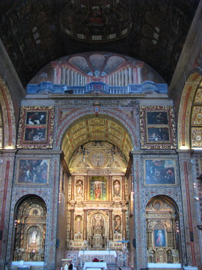 Mein Weg führt mich am Zuckermuseum vorbei (Zuckerexport war lange entscheidend für den hiesigen Wohlstand) zu einem größeren Platz, an dem das Jesuitenkolleg und das Rathaus liegen. Die Jesuitenkirche hat, wie mir auf Anhieb scheint, eine typisch portugiesische Deckenbemalung und einen Altarraum mit reichlich Blattgold und viel Kacheln an den Seiten. Eine Hochzeit wird vorbereitet, auch die Braut in Weiß taucht schon auf während die Bänke noch leer sind.