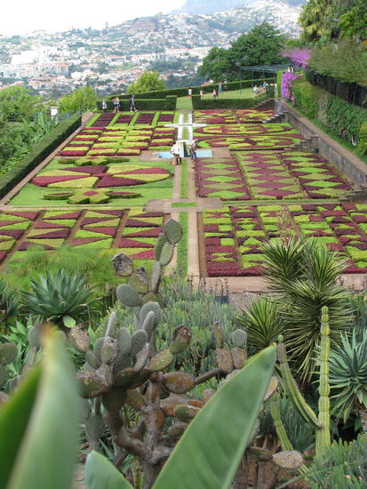 Zum Botanischen Garten fahre ich mit dem Bus vom Busbahnhof in Funchal. Er ist ganz schön terassenförmig angelegt und bietet eine gute Aussicht über Funchal, er hat auch ein gut in den Garten integriertes Café - sie trachten augenscheinlich auch nicht danach, hier mit der Bewirtschaftung große Gewinne zu machen. Am nördlichen Ausgang des Gartens stelle ich fest, daß kein Weg und keine Straße vom Botanischen Garten nach Monte führt, also nehme ich die Seilbahn als einzige direkte Möglichkeit.