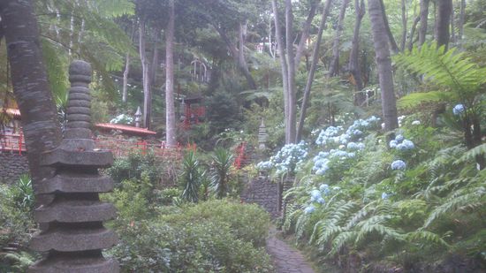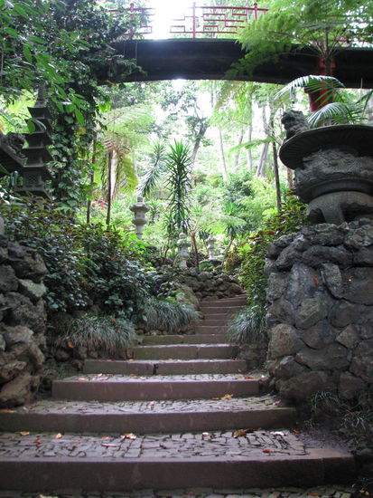 Nahe der Kirche beginnt der Tropische Garten: Herzstück sind der Japanische und Chinesische Garten, genannt orientalische Gärten, außerdem gibt es viele Azulejos (blaue Kachelbilder), v. a. zur portugiesischen Geschichte. Mit vielen Toren und Buddhafiguren und von Beton eingefassten rauschendem Wasser entspricht der Garten den etwas kitschigen südeuropäischen Vorstellungen von Schönheit - aber die Gärten in den Originalländern sind ja wohl nicht weniger kitschig. Im Garten sind eine Mineralienausstellung und eine Ausstellung für Afrikanische Kunst; die Kunstsammlung kommt zum größten Teil aus einem Garten in Pretoria: hier hat der Gründer des Gartens vor 30 Jahren 2500 Skulpturen gekauft. In den 60'er Jahren des letzten Jh gab es in Simbabwe eine Künstlergemeinschaft, die rasch bekannt wurde, weil damals erstmals mächtige Sammler sich intensiv für zeitgenössische afrikanische Kunst interessierten. Ein Raum ist auch ausgesprochen vollgestellt mit Exponaten; der Garten wird übrigens mittlerweile von einer Stiftung geführt.