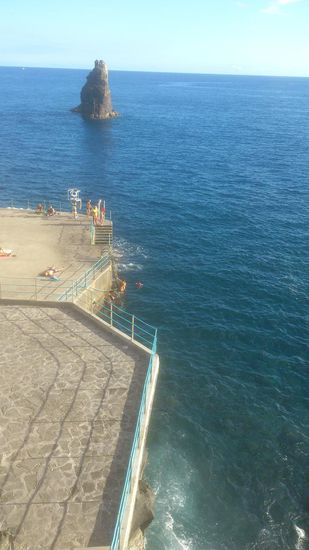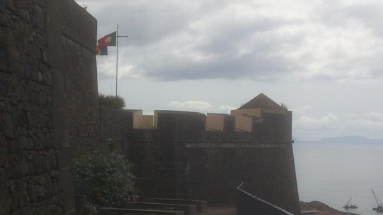 Zurück in Funchal gehe ich zur kleinen Felseninsel Potinha, die durch eine Straße Teil des Hafens ist. Sie gehörte mal den englischen Tempelrittern, hier steht noch eine kleine Festung. Auf einem Plakat hat der Besitzer geschrieben, daß die Regierung von Madeira sich die Insel illegal angeeignet hätte, er bezeichnet sich mir gegenüber auch als "der Prinz"; aber es ist doch eher ein Spaß: er war Lehrer, hat die Festung vor einigen Jahren gekauft und lebt jetzt mit seiner Familie hier.