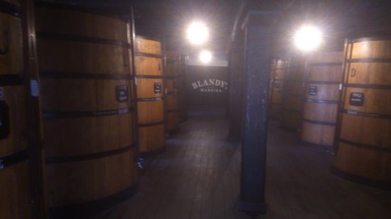 Der genaue Prozess der Herstellung von Madeirawein scheint der Firma allerdings etwas peinlich zu sein, weder habe ich die Info bei der Führung registriert noch steht sie auf deren Webseiten: der Wein hat schlicht deswegen viel mehr Süße und Alkohol weil die Vergärung mit Branntwein gestoppt wird. Wie der Sherry reift er dann in den Fässern in Kontakt mit Luft. Das Reifen wird durch erhöhte Temperaturen beschleunigt, zu meiner Überraschung teilweise unreguliert (besonders warm wird es unter dem Dach); am Ende kommt er in Riesenfässer oder Container.