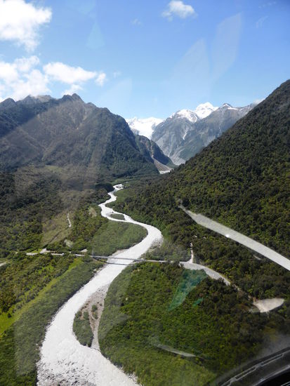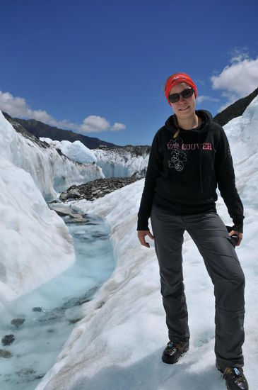 An der Westkueste gibt es bis auf einige, wenige kleine Orte eigentlich fast nur Natur pur zu geniessen und zu erkunden. Straende, Fluesse die in den Alpen aus Gletschern und schmelzendem Schnee entspringen und sich den Weg ins Meer bahnen. Dabei fliessen sie durch Regenwald und durch weite Felder bis sie im Tasmanischen Meer muenden. Die bekanntesten Orte an der Westkueste sind Fox Glacier und Franz Josef Glacier und wie es die Namen schon sagen ist klar was dort anzutreffen und zu erwarten ist. Wir haben uns das zu Herzen genommen und auch gleich eine Gletscherbesichtigung gebucht. Leider ist es in diesen Tagen nicht mehr moeglich den Gletscher vom Fusse aus zu bewandern da aus Gruenden der starken Schmelze der unterste Teil zusammengebrochen und sehr gefaehrlich ist. Da aber auch Helikopterfliegen Spass macht und fuer Cyril etwas neues ist, ist das sozusagen wie zwei Fliegen mit nur einem Schlag kaputt zu machen... Die 2-3 Stunden auf dem Gletscher waren dann auch sehr eindruecklich, da wir dort kleinere Fluesse und Wasserfaelle und eindrueckliche Spalten welche das Wasser formte erforschen durften. Nach dem Rueckflug auf sicheren Boden haben wir unsere Reise dann weiter entlang der Westkueste Richtung Norden auf der Suche nach einem geeigneten Nachtlager verbracht.