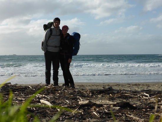 Wetterbericht hin oder her, wenn wir unterwegs sind regnet es nicht! - dachten wir jedenfalls bis am Sonntag...... Da sah das ganze dann etwas anders aus... Nach ca. 15 Kilometern standen wir inmitten vom niergendwo und es regnete in Strömen... und es gieng nicht lange und wir waren "pflotschnass und steidräckig". Obwohl wir die wunderschönen Landschaften und Rebberge durch den Regen etwas weniger klar wahrnehmen konnten, radelten wir auf dieser hügeligen Insel weiter und hatten doch noch riesen Glück: EIN KIWI IN FREIER WILDNIS! das sieht man selbst in Neuseeland nicht allzu oft. Leider waren unsere Kameras in unseren Rucksäcken unter unseren Regelmänteln so gut verstaut, dass der scheue Vogel schon längst wieder verschwunder war und wir leider keine Beweisfotos liefern können Nass und dreckig erkundeten wir den Rest der Insel und fuhren insgesamt ca. 60 Kilometer. Die sonnigen Augenblicke waren leider etwas kürzer als die regnerischen aber wir genossen es und hatten es trotz dem Wetter und grosser Anstrengung sehr lustig ...denn immer wenn ich Cyrils dreckiges Gesicht sah, bekam ich einen Lachanfall Und er ist kein Kiwi und draum auch nicht so schnell, dass er vor einem Beweisfoto hätte fliehen können - siehe unten