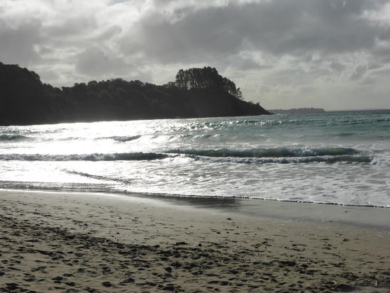 Juhui Wochenende! Nach einem riesen Brocken Hausaufgaben machten wir uns startklar für unser Wochenende auf Waiheke Island. Die Insel ist bekannt für neuseeländisch Wein. Trotz schlechtem Wetterbericht trafen wir top-optimistisch auf der schönen Insel ein und mieten zwei Velos für zwei Tage..... Der Samstag war wettertechnisch unser Glückstag. Wir erkundeten den ersten Teil der Insel mit dem Velo, bestaunten wunderschöne Landschaften, Buchten und Strände und erst als wir eine geeignete Unterkunft gefunden haben, hat der Regen angefangen. Als sich der Hunger bemerkbar machte und wir nach draussen giengen um ein Restaurant zu suchen, hörte der Regen glücklicherweise auf und fieng erst wieder an als wir nach einem schönen Spaziergang am Strand im Restaurant angkommen sind. Dort gönnten wir uns dann die erste Flasche Wein