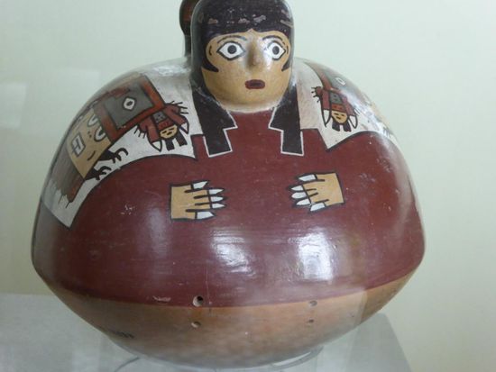 Weiter fahren wir zum Archäologischen Museum, das in einem alten Kolonialhaus untergebracht ist. Jenny versucht uns einen Überblick über all die verschiedenen Kulturen zu geben, die in Peru entstanden sind. Faszinierend, wieviele verschiedene Volksstämme hier ihre Einflüsse hinterlassen haben. Wunderschöne Keramikarbeiten zeugen von einer hochstehenden Handwerkskunst und erste Hinweise auf Pflanzenkultivierung und Domestizierung von Tieren lassen sich bis 14'000 vor Chr. zurückverfolgen. Seit meinem letzten Besuch vor einem Jahr ist eine interessante neue Abteilung der Paracas-Kultur entstanden. Hier werden die Mumiengräber sehr eindrücklich rekonstruiert.