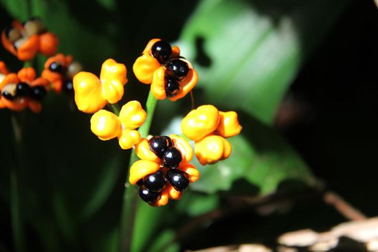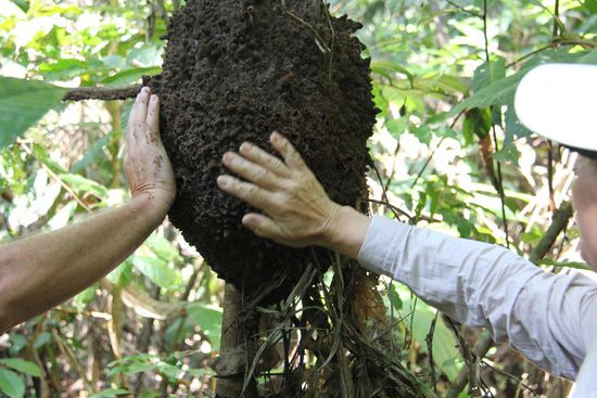 Die Guias machen ihre Gäste auf alles aufmerksam, was sie unterwegs antreffen. Das können kleine Raupen, essbare Früchte, interessante Blätter oder farbige Vögel sein. Sie zeigen wie man sich mit Termiten gegen Moskitos schützt und dann sucht May kleine Kokosfrüchte. Darin leben kleine weisse Maden, die er mit der Machete herausholt. "Sie schmecken nach Kokosnuss", erklärt er und wieder einmal staune ich, dass er das Vertrauen seiner Gäste gewinnt und Beat und Werni dazu bringt, eines der weissen Tiere zu essen. Und das heute sogar ohne dass er es vormacht.