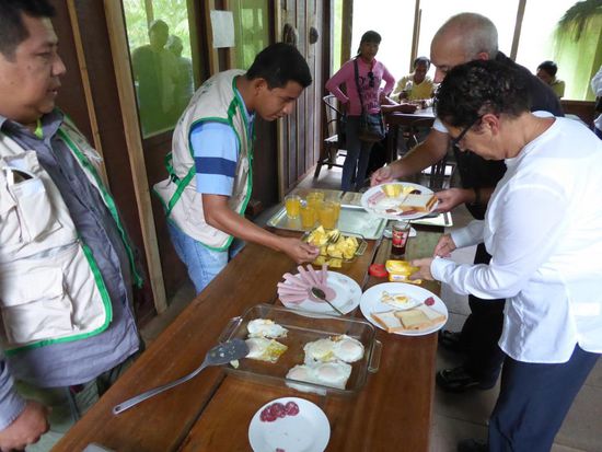 Nach dem Frühstück holt uns das Motorboot ab, wir verabschieden uns von der Lodge.