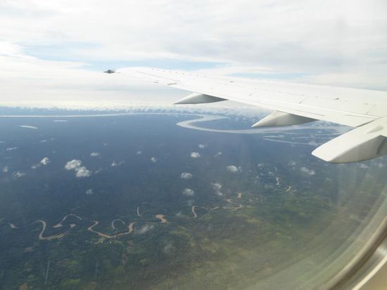 Aus dem Flugzeug grüssen wir noch einmal den Amazonas, der tief unter uns durch den grünen Dschungel mäandert und schon bald von dicken Dunstwolken verschluckt wird. Später tauchen die Berge im Nebel auf und dann sind wir schon in Lima.