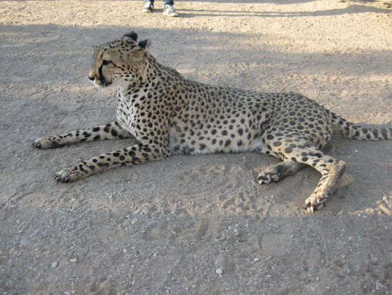 Nach der täglichen Reiseroutine geht es auf Richtung Köcherbaumwald. Doch was soll ich sagen, nachdem wir auf dem Campside in der Nähe von Keetmanshoop angekommen sind, hat etwas ganz anderes meine Aufmerksamkeit geweckt. Die Gepardendame Chikita.