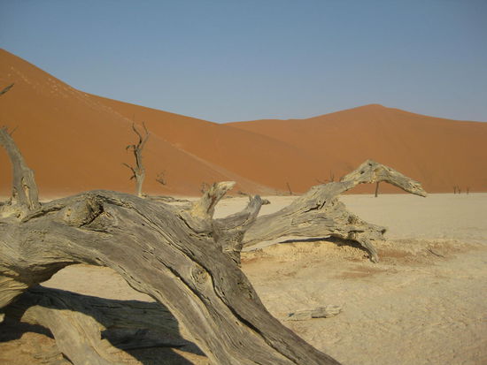 Auch wenn ich noch Stundenlang hier im Deadvlei hätte bleiben können, wir müssen weiter. Ansonsten schaffen wir es weder pünktlich zum Sonnenuntergang zur Düne 45 noch pünktlich vor Toreschluss zurück ins Camp. Immerhin sind es von der Düne 45 noch knapp 40 km zu fahren und ich möchte die Gelegenheit bei Fennys Cousine im Haus (sie ist angestellt bei NWR im SesriemCamp) zu übernachten nun wirklich nicht verpassen.