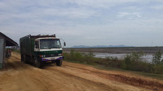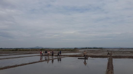 In der Nähe von Kampot gibt es sehr viele Salz Felder. Bei Flut wird das Meerwasser in die Felder geleitet, wo es dann verdunstet und das Salz zurück lässt...