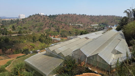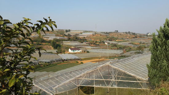 Nach einigen entspannten Stunden, folgten wir mit dem Motorrad den Schienen des Bummelzuges solange es ging und wir dann auf die reguläre Straße wechseln mussten. Fast soweit das Auge reicht, konnten wir Glashäuser in unterschiedlicher Größe bestaunen in denen die unzähligen Blumen für das Tet-Fest Mitte Februar gezüchtet werden.