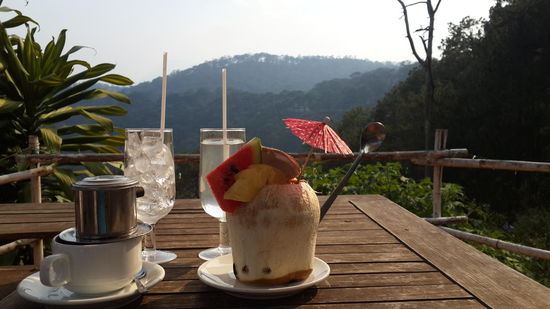 In Da lat angekommen, brausten wir begeistert mit Motorrad Richtung Berg. Dort angelangt "durften" wir auf einen Jeep umsteigen. Natürlich gegen Entgelt u Parkgebühren fürs mitgebrachte Gefährt. Nach einer halbstündigen Pause zum Aussicht genießen, nahm uns der Jeep auch wieder mit hinunter. Typisch Tourismus.
