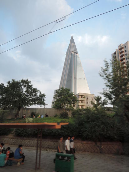 Nach etlichen abendlichen Bieren im Drehrestaurant auf dem Dach unseres Yanggakdo-Hotels, standen am nächsten Tag zwei echte Highlights auf dem Programm: Mit gebügeltem Hemd ins Mausoleum und U-Bahn-Fahren. Unserer Reiseleiterin war die Anspannung am Morgen regelrecht anzumerken, schließlich hätte sie dafür gerade stehen müssen, hätte sich einer von uns im Mausoleum daneben benommen. Natürlich haben wir uns alle zusammengerissen und uns jeweils dreimal verbeugt. "When in Rome do it like the Romans do." Right? Der Aufbau war bei beiden verblichenen Potentaten jeweils gleich: Zuerst defilierte man am Schneewittchen-gleich eingehausten Leichnam vorbei (für Koreanerinnen war hier der Zeitpunkt gekommen, hörbar zu schluchzen) und im nächsten Raum waren dann sämtliche Auszeichnungen ausgestellt, die den beiden Giganten jemals zuteil wurden. Hier wurden dann ohne falsche Scham noch die letzten Phantasie-Orden aus z.B. Gabun mit Stolz und Riesenfoto dazu präsentiert. Tja, und im nächsten Raum stand dann: ein Zug! Bin mir nicht sicher, aber ich glaube, es erklärt sich daraus, dass beide Titanen jeweils im Zug gestorben sind. Schade, dass keiner auf dem Scheißhaus verreckt ist! Das wäre aber noch eine Idee für den Dicken ...