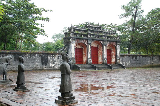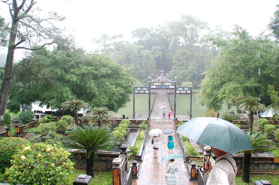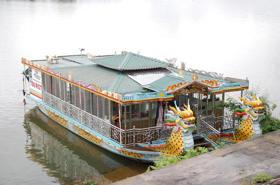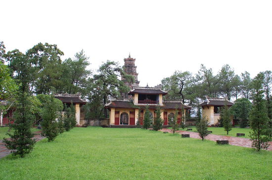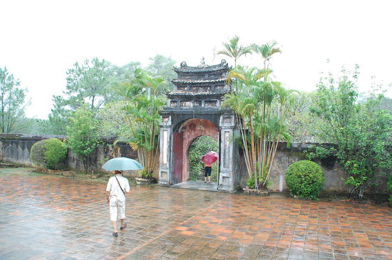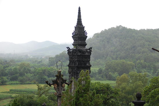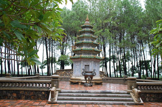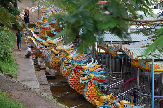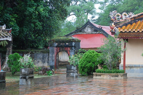 Unser erster Stopp war dann an der Thien Mu-Pagode, hier kann man auch mit dem Drachenboot hinfahren, dauert aber auch lange und ist im Regen nicht prickelnd.