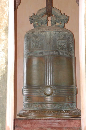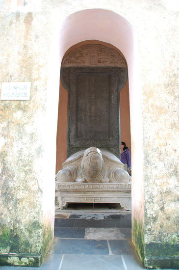 Mehrere Stufen führen zum Eingang, hier stehen dem Turm 2 Pavillons zur Seite. Einer mit einer 2to schweren Glocke und einer mit einer Steinstele auf dem Rücken einer Schildkröte.