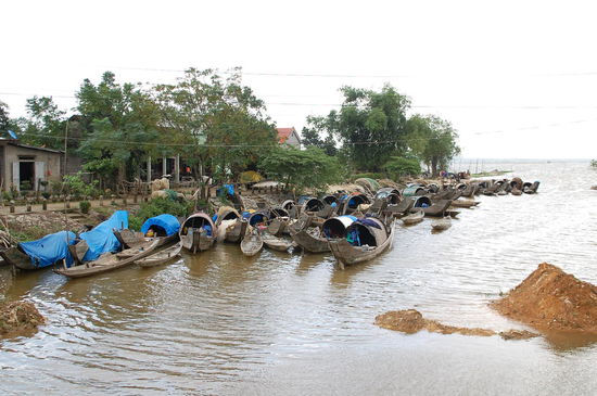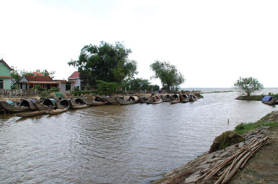 Er hat einen Halt bei einem Fischerdorf gemacht. Es ist für uns ja unverständlich, dass Menschen auf/in solchen Booten leben können.